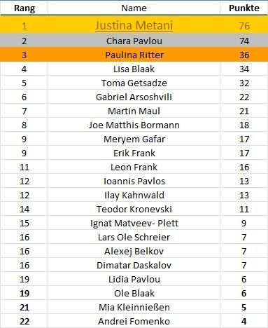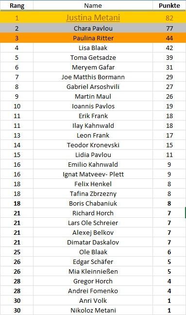 Ihr seht immer rechts die aktualisierte und damit aktuelle Rangliste >>>>>>>>>>>>>>>>>